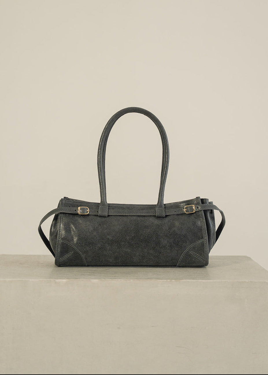 Bolsa de piel con asas largas, detalle de hebillas, y un toque deslavado vintage. Súper amplia y resistente, ideal para el diario. Con strap incluido.