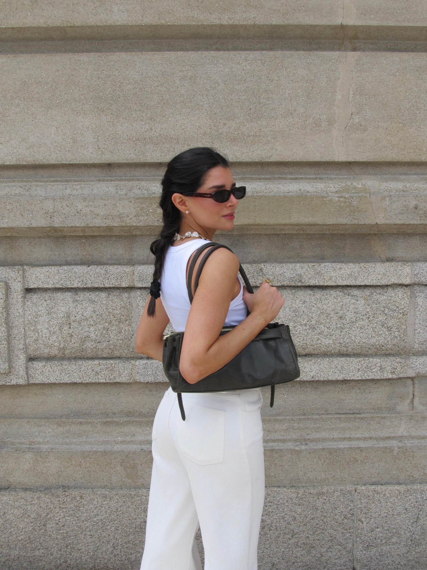 "Mi Capri Military es perfecta para cualquier ocasión. La uso para el trabajo y los fines de semana. El color es versátil y combina con todo. Además, cabe mi laptop sin problema."