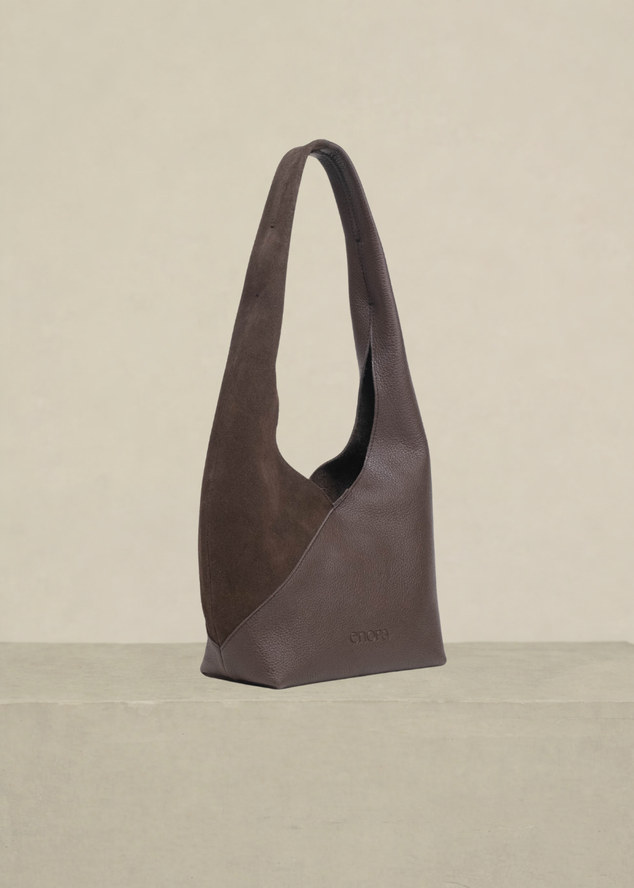 Bolsa de piel y gamuza con asa amplia al hombro. Diseño suave y ligero, súper cómoda para el día a día. Incluye pouch desmontable con cierre metálico para mayor practicidad.