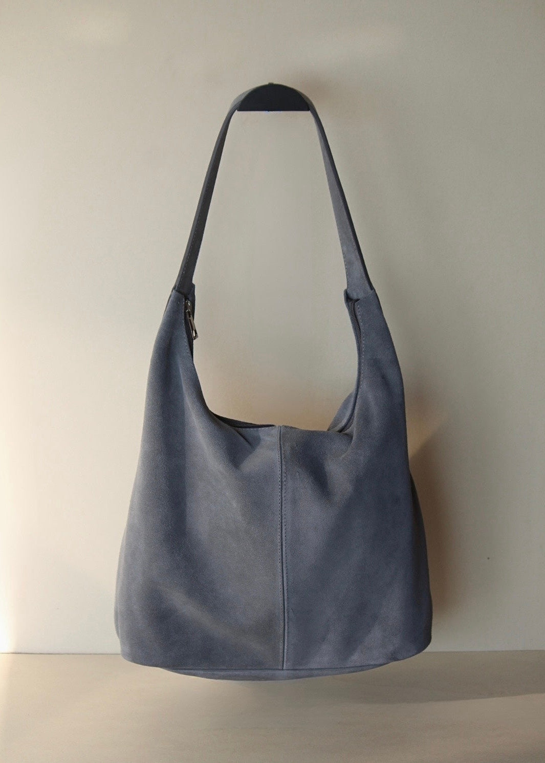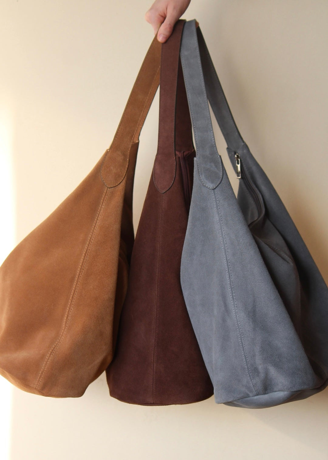 Bolsa de gamuza con zíper. Súper amplia, ideal para el diario.