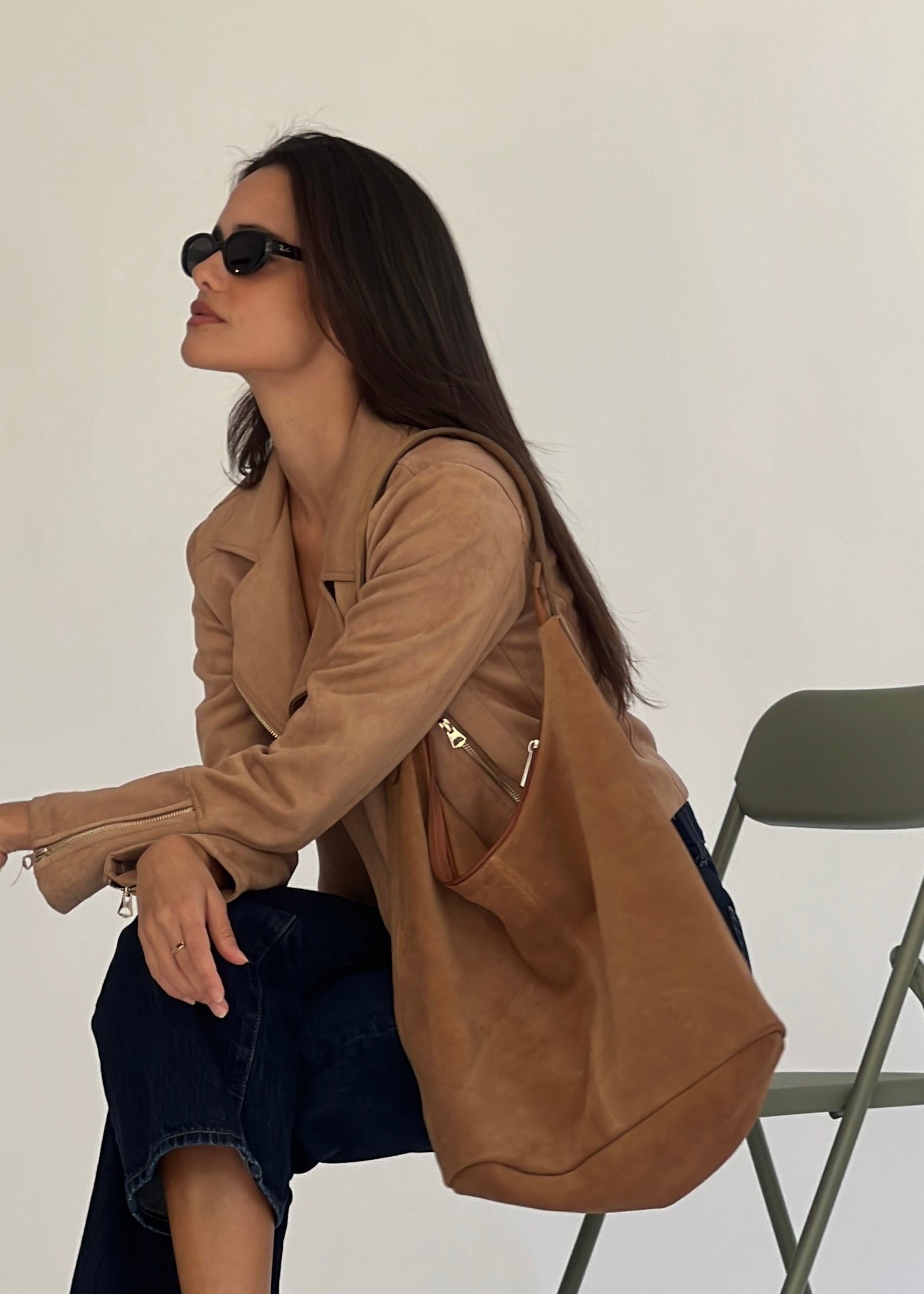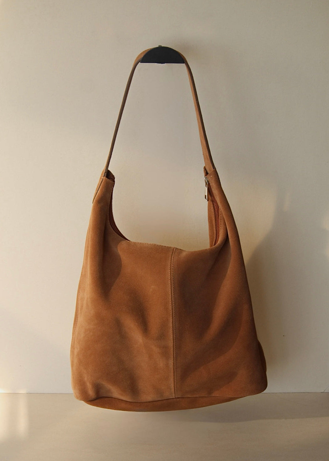 Bolsa de gamuza con zíper. Súper amplia, ideal para el diario.