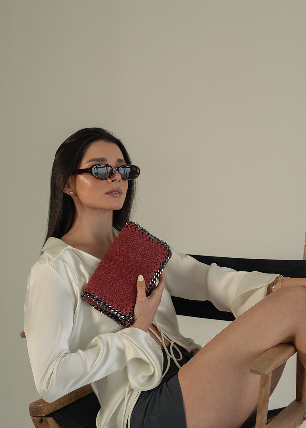 Bolsa de piel versátil con cadena. Úsala de 3 maneras.